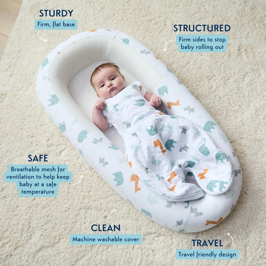 Purflo Sleeptight Baby Bed – Breathable & Portable Infant Lounger, Animal Safari Print