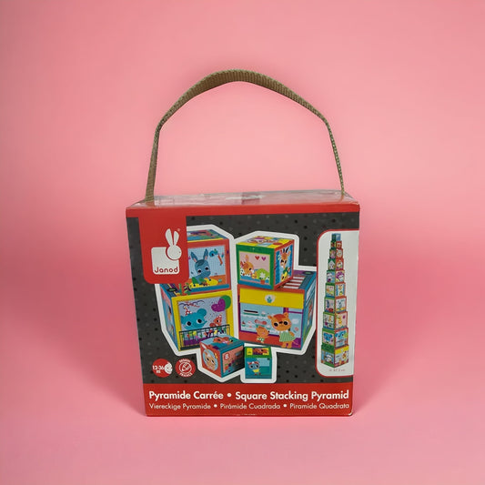 Janod - Square Stacking Pyramid Toy - Early-Learning. Ages 12-36m
