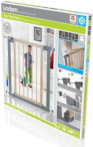 Lindam by Munchkin Sure Shut Deco Pressure Fit Safety Gate, Wood and Metal, 76 - 82 cm